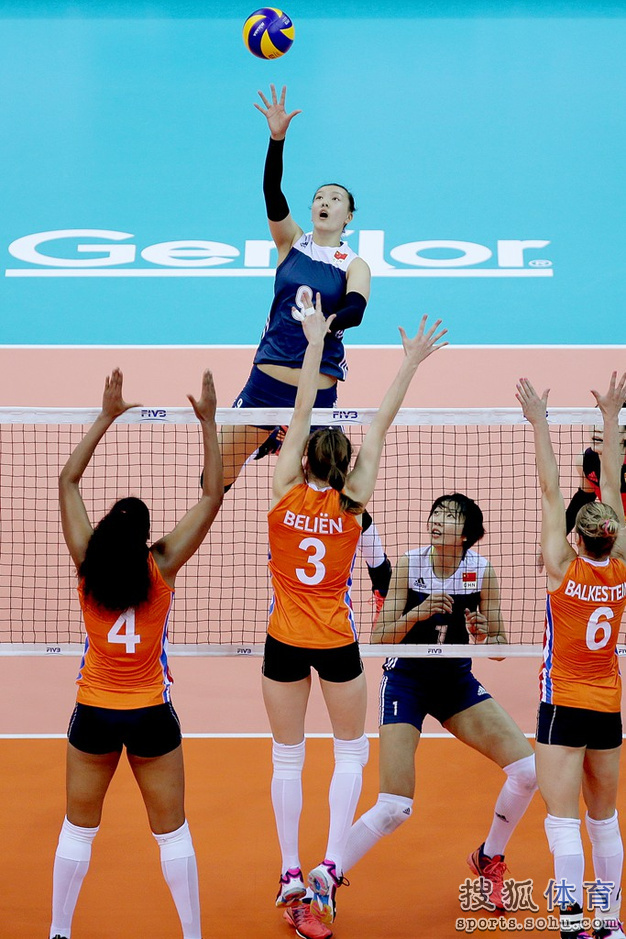 北京时间8月4日晚,2017国际排联世界女排大奖赛总决赛在南京奥体中心体育馆结束了,中国队迎战荷兰队。(搜狐体育李志岩摄)