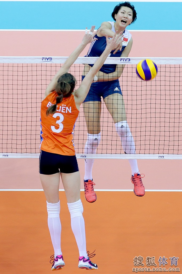 北京时间8月4日晚,2017国际排联世界女排大奖赛总决赛在南京奥体中心体育馆结束了,中国队迎战荷兰队。(搜狐体育李志岩摄)
