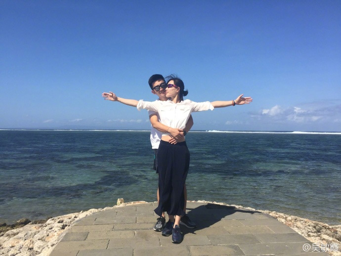 8月15日,吴敏霞分享和老公张效诚在巴厘岛度蜜月的照片,配文:“在美丽的风景中留下我们的回忆。”两人在海边大摆泰坦尼克经典pose,十分恩爱。