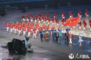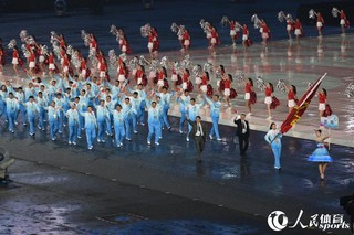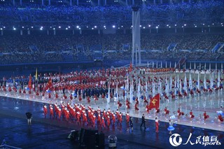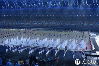 人民网天津8月27日电 8月27日20时,第十三届全运会在天津奥林匹克体育中心正式开幕。图为各代表团入场。