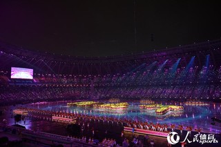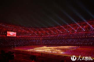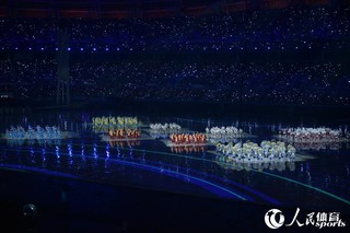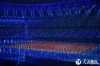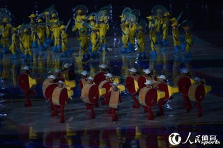 人民网天津8月27日电 8月27日20时,第十三届全运会在天津奥林匹克体育中心正式开幕。图为精彩纷呈的文艺表演。
