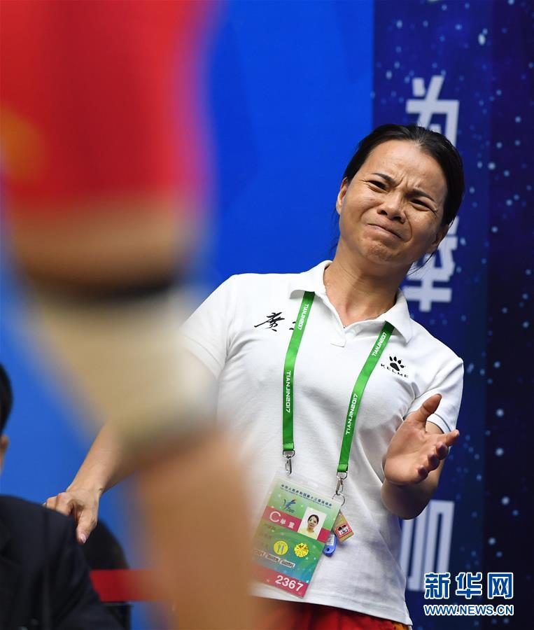 8月29日,广东选手周小菁的教练严章群在第十三届全运会举重女子63公斤级决赛挺举比赛中为弟子“捏把汗”。在全运会举重赛场,选手上场比赛时,场外的教练总是比弟子更着急更兴奋。新华社记者王毓国摄