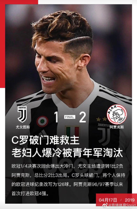 【球迷好心塞!尤文无缘四强】尤文图斯在主场1-2负于阿贾克斯。C罗头球首开纪录,范德贝克和德里赫特各入一球完成逆转。